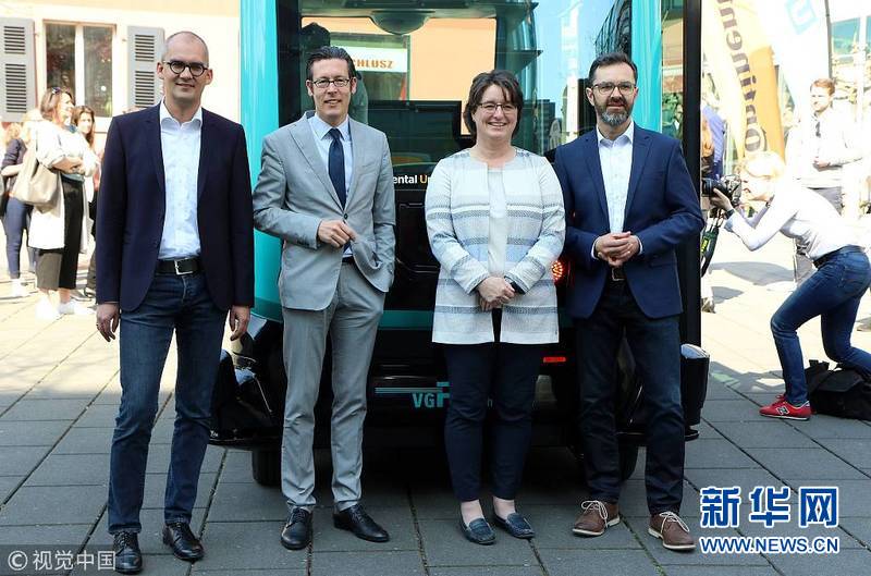 4月17日,德國法蘭克福,法蘭克福應(yīng)用科學大學測試自動駕駛擺渡巴士。(圖片來源:視覺中國)