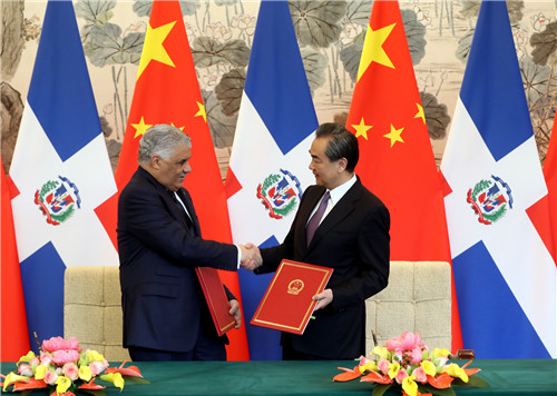 新華社北京5月1日電(記者 許可)國務(wù)委員兼外交部長王毅1日上午在北京與多米尼加外長巴爾加斯簽署《中華人民共和國和多米尼加共和國關(guān)于建立外交關(guān)系的聯(lián)合公報(bào)》。自公報(bào)簽署之日起,中華人民共和國和多米尼加共和國相互承認(rèn)并建立大使級外交關(guān)系。