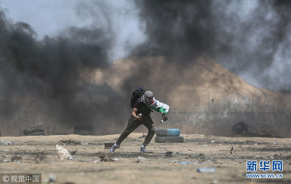 當(dāng)?shù)貢r間2018年5月11日,加沙地帶,巴勒斯坦民眾游行要求回歸權(quán),與以色列安全部隊發(fā)生沖突。(圖片來源:視覺中國)
