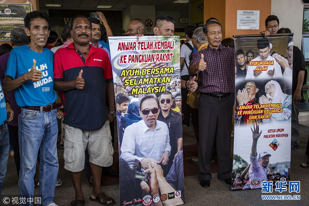 2018年5月11日訊,馬來西亞新當選總理馬哈蒂爾表示,最高元首已經同意特赦前副總理安瓦爾,希盟方面將盡快推動有關程序。安瓦爾以前頗受馬哈蒂爾賞識和提攜,被外界視為馬哈蒂爾的接班人。然而,兩人后來鬧僵,馬哈蒂爾1998年革除安瓦爾的副總理之職。隨后幾年間,安瓦爾因貪腐和雞奸罪名入獄。路透社報道,根據馬哈蒂爾與安瓦爾“談妥”的條件,馬哈蒂爾贏得選舉后將向最高元首尋求特赦安瓦爾,待安瓦爾出獄后,便退位讓賢,改由安瓦爾出任總理。不過,馬來西亞法律規(guī)定出獄者5年內不得參政,即便獲特赦也要參加國會議席補選才有望重返政壇。(圖片來源:視覺中國)