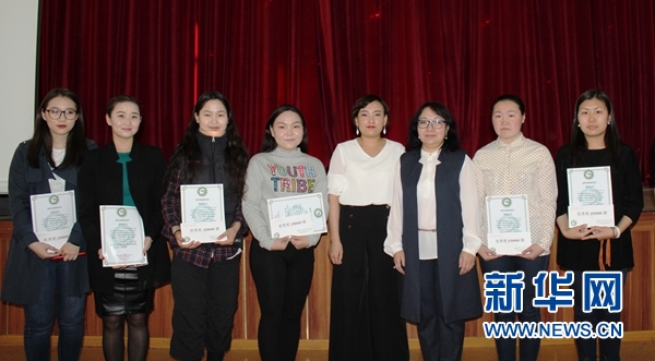 5月11日,蒙古國(guó)第六屆大中學(xué)生漢字硬筆書法比賽頒獎(jiǎng)儀式現(xiàn)場(chǎng)。新華網(wǎng)發(fā) 意特格樂(lè)攝
