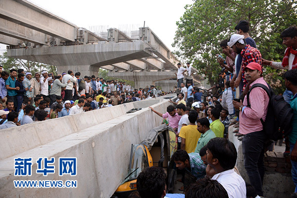 5月15日,在印度北方邦瓦拉納西地區(qū),人們聚集在立交橋垮塌現(xiàn)場。新華社發(fā)