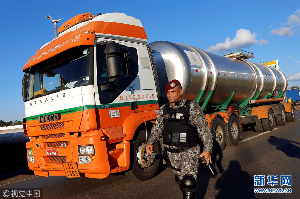 當(dāng)?shù)貢r間2018年5月26日,巴西盧濟阿尼亞,卡車司機駕車封堵高速公路,抗議油價上漲。(圖片來源:視覺中國)