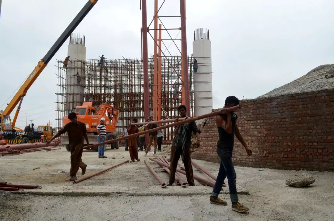 在拉合爾軌道交通橙線項目的建設(shè)工地上