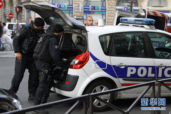 6月12日,在法國巴黎,警方在人質(zhì)劫持事件結(jié)束后準(zhǔn)備離開。新華社記者韓冰攝