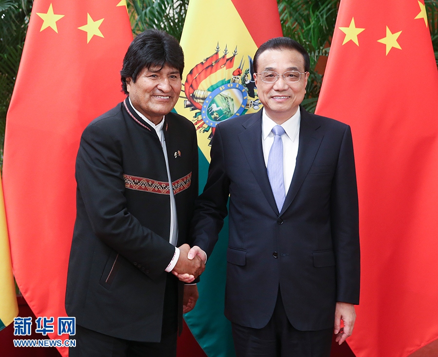 李克強指出,中方愿同玻方抓住兩國關(guān)系發(fā)展的新機(jī)遇,推動經(jīng)貿(mào)、旅游、人文合作,增加進(jìn)口玻方有競爭力、高質(zhì)量的產(chǎn)品。加強產(chǎn)能合作,深化資源開發(fā)利用,推動玻工業(yè)化進(jìn)程。中玻合作是南南合作的組成部分,中方愿同包括玻方在內(nèi)的拉美國家一道,維護(hù)發(fā)展中國家共同利益,促進(jìn)世界和平、穩(wěn)定與發(fā)展。