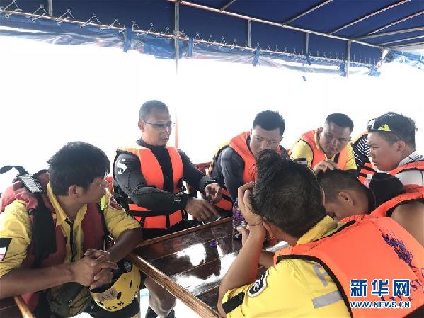 7月8日,在泰國普吉,來自民間的公羊救援隊與普吉藍海救援隊成員制定救援方案。新華社發(fā)(普吉藍海救援隊提供)
