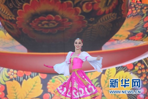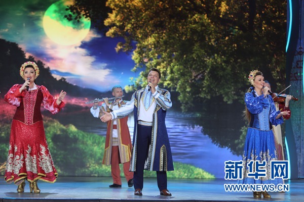 演員們在“斯拉夫巴扎”國際藝術節(jié)上表演。新華社者 魏忠杰攝