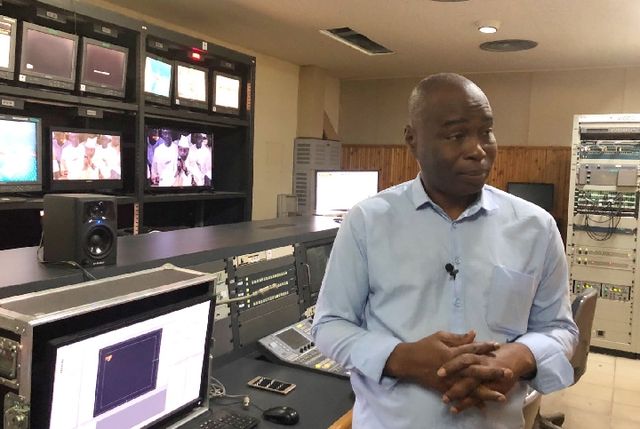 2018年7月19日,塞內(nèi)加爾國家電視臺(tái)新聞部主任達(dá)哈·巴在工作間接受記者采訪。(新華社記者孟娜攝)