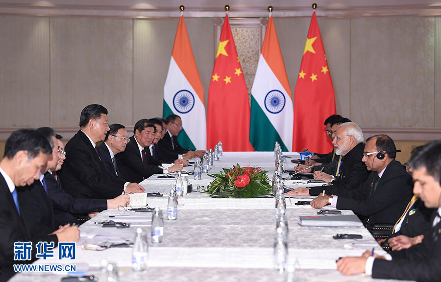 7月26日,國(guó)家主席習(xí)近平在南非約翰內(nèi)斯堡會(huì)見印度總理莫迪。 新華社記者 燕雁 攝