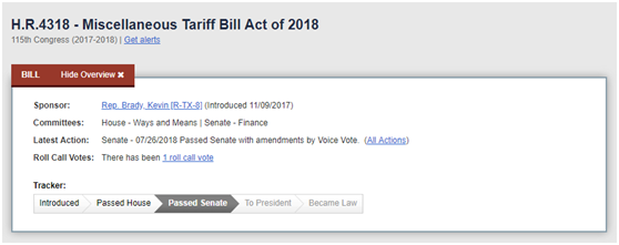 根據(jù)英國路透社的報(bào)道,這個(gè)法案名叫Miscellaneous Tariff Bill,中文叫“綜合關(guān)稅法案”(也被譯成“關(guān)稅雜項(xiàng)法案”)。
