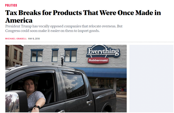 這方面,美國的《大西洋月刊》倒是在今年5月美國對(duì)華貿(mào)易戰(zhàn)開打前有所關(guān)注。當(dāng)時(shí)這家媒體認(rèn)為,這個(gè)法案展現(xiàn)了美國當(dāng)下貿(mào)易政策的一種矛盾:一方面美國國會(huì)兩黨都希望給大企業(yè)進(jìn)一步減輕關(guān)稅壓力——甭管他們的產(chǎn)品到底是哪兒生產(chǎn)的;可另一方面美國總統(tǒng)特朗普卻多次表示要懲罰把工廠搬到美國境外的企業(yè)。