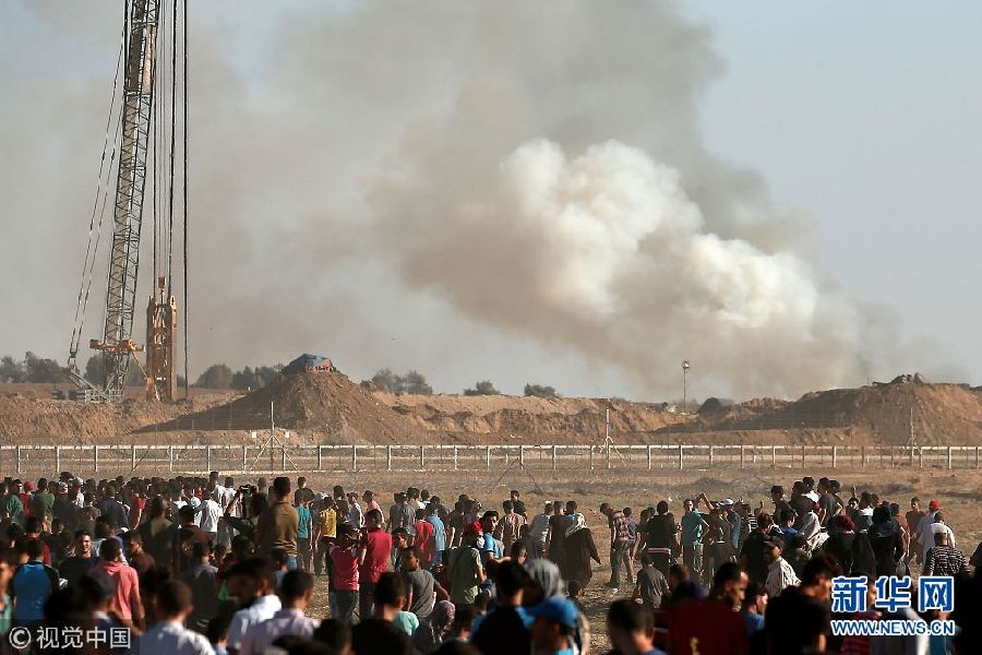 當(dāng)?shù)貢r間2018年7月27日,加沙,巴勒斯坦民眾在加沙和以色列邊境舉行大規(guī)模的示威活動。(圖片來源:視覺中國)