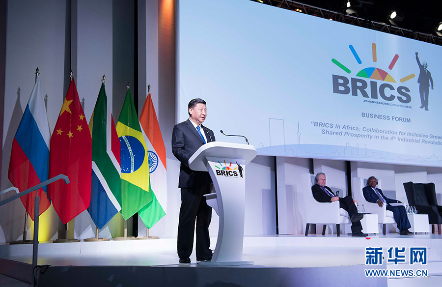 7月25日,國家主席習近平應(yīng)邀出席在南非約翰內(nèi)斯堡舉行的金磚國家工商論壇,并發(fā)表題為《順應(yīng)時代潮流 實現(xiàn)共同發(fā)展》的重要講話。新華社記者李濤攝