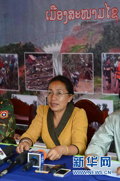 7月29日,在老撾薩南賽縣,老撾阿速坡省委副書(shū)記、潰壩事故現(xiàn)場(chǎng)救援副總指揮米娜蓬·賽頌普在薩南賽縣縣政府救援情況新聞發(fā)布會(huì)上對(duì)媒體發(fā)布搜救進(jìn)展。 老新華社發(fā)(劉艾倫攝)