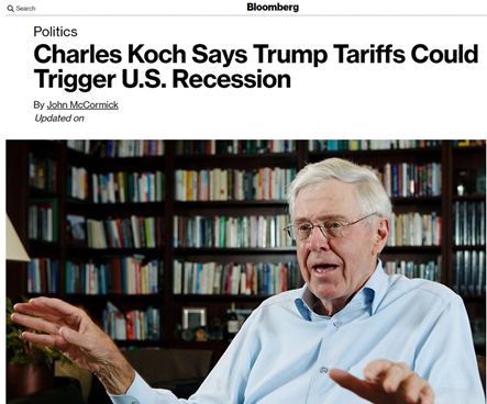 而在上周末剛剛結(jié)束的這么一場為期三天、并有數(shù)百人參加的活動上,科赫兄弟中年長的哥哥查爾斯·科赫就公開宣布他對美國政府的貿(mào)易戰(zhàn)行為很擔(dān)憂,認(rèn)為美國對中國等多個國家揮舞的關(guān)稅大棒將令美國經(jīng)濟(jì)面臨“災(zāi)難性”的衰退風(fēng)險。