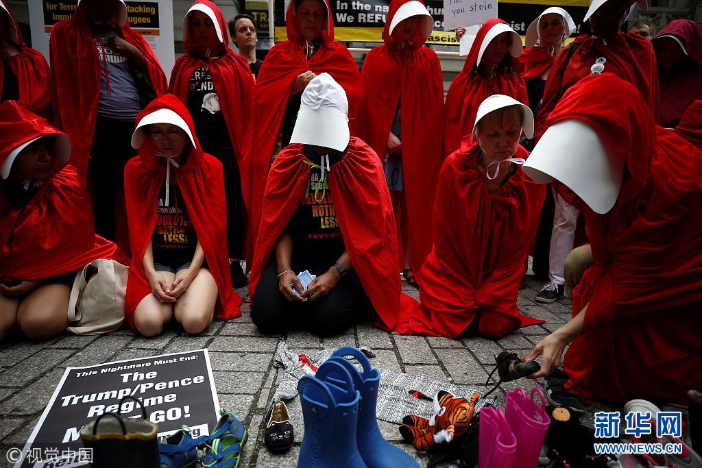 紐約:女性化身美劇中“使女”抗議特朗普 持鞋子聲援移民兒童(組圖)
