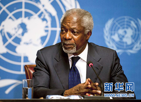 這是2012年6月30日,時(shí)任聯(lián)合國-阿盟敘利亞危機(jī)聯(lián)合特使安南在瑞士日內(nèi)瓦出席新聞發(fā)布會。 新華社記者謝海寧攝