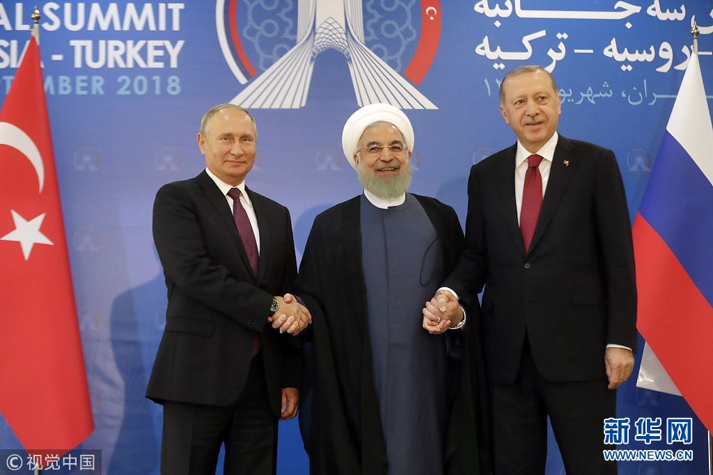 當(dāng)?shù)貢r間2018年9月7日,伊朗德黑蘭,當(dāng)日,俄羅斯、土耳其和伊朗三國首腦齊聚伊朗首都德黑蘭舉行峰會,討論