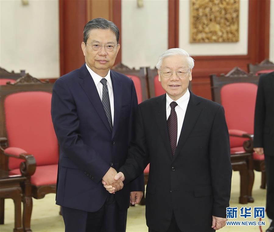 會見阮富仲時,趙樂際首先轉(zhuǎn)達了習近平總書記的親切問候。趙樂際說,在兩黨總書記親自引領(lǐng)下,兩黨兩國關(guān)系持續(xù)健康穩(wěn)定發(fā)展。我此訪就是落實兩黨總書記達成的重要共識,按照“十六字”方針和“四好”精神,加強戰(zhàn)略溝通,密切高層交往,促進務(wù)實合作,推動中越全面戰(zhàn)略合作伙伴關(guān)系邁上新臺階。阮富仲請趙樂際轉(zhuǎn)達對習近平總書記的良好祝愿,誠摯感謝習近平總書記委托趙樂際同志代表中共中央吊唁越南國家主席陳大光。阮富仲表示,當前越中關(guān)系處于歷史最好時期,中國的發(fā)展成就不僅造福中國人民,也對越南國家發(fā)展和越中關(guān)系發(fā)展發(fā)揮重要促進作用。越方愿加強兩黨理論創(chuàng)新和實踐經(jīng)驗交流,全面有效落實高層共識,深化各領(lǐng)域合作,不斷豐富越中傳統(tǒng)友好合作關(guān)系的時代內(nèi)涵。