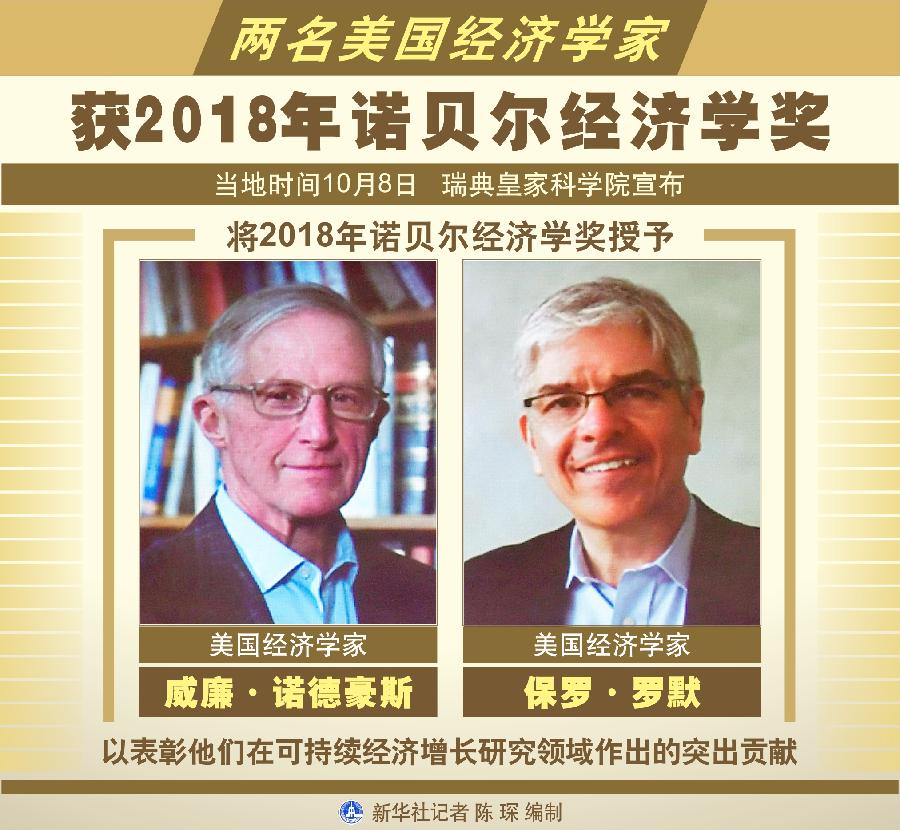 新華社斯德哥爾摩10月8日電(記者和苗 付一鳴)瑞典皇家科學院8日宣布,將2018年諾貝爾經(jīng)濟學獎授予美國經(jīng)濟學家威廉·諾德豪斯和保羅·羅默,以表彰他們在可持續(xù)經(jīng)濟增長研究領域作出的突出貢獻。