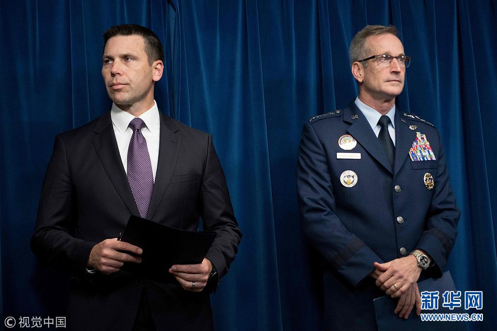 當(dāng)?shù)貢r間2018年10月29日,美國華盛頓,美軍北方司令部司令奧肖內(nèi)西、美國海關(guān)和邊境保護(hù)局長凱文·麥卡利南舉行記者會。奧肖內(nèi)西29日宣布,美軍將派遣5200名現(xiàn)役士兵前往南部邊境,應(yīng)對中美洲移民潮。近日,數(shù)千名來自洪都拉斯、危地馬拉和薩爾瓦多等中美洲國家民眾穿越邊界進(jìn)入墨西哥。他們或步行、或乘坐大篷車北上,有意穿越墨西哥前往美國。 (圖片來源:視覺中國)