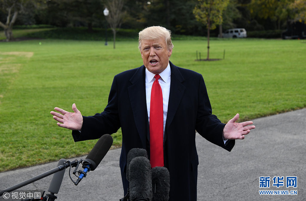 當(dāng)?shù)貢r間2018年10月31日,美國華盛頓,美國總統(tǒng)特朗普啟程前往佛羅里達(dá)州出席競選集會,在白宮南草坪發(fā)表講話。特朗普稱,計劃部署在美墨邊境的現(xiàn)役軍人數(shù)量或增加至15000人,以嚴(yán)防來勢洶洶的“大篷車”移民。(圖片來源:視覺中國)