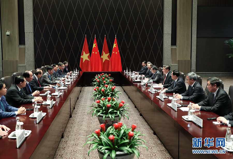 習近平強調(diào),中越要保持兩黨兩國高層密切交往傳統(tǒng),加快推進“一帶一路”和“兩廊一圈”對接并及早確定優(yōu)先合作領域。中方愿鼓勵更多中國企業(yè)赴越南參與大項目合作,加強互聯(lián)互通。越南是本屆中國國際進口博覽會主賓國,又是中國在東南亞最大貿(mào)易伙伴。中方愿從越方進口更多適銷對路的產(chǎn)品。雙方要將合作多向民生領域傾斜,持續(xù)增進兩國民眾特別是青年一代友好感情。雙方要共同努力,維護海上和平穩(wěn)定,穩(wěn)步推進海上合作。