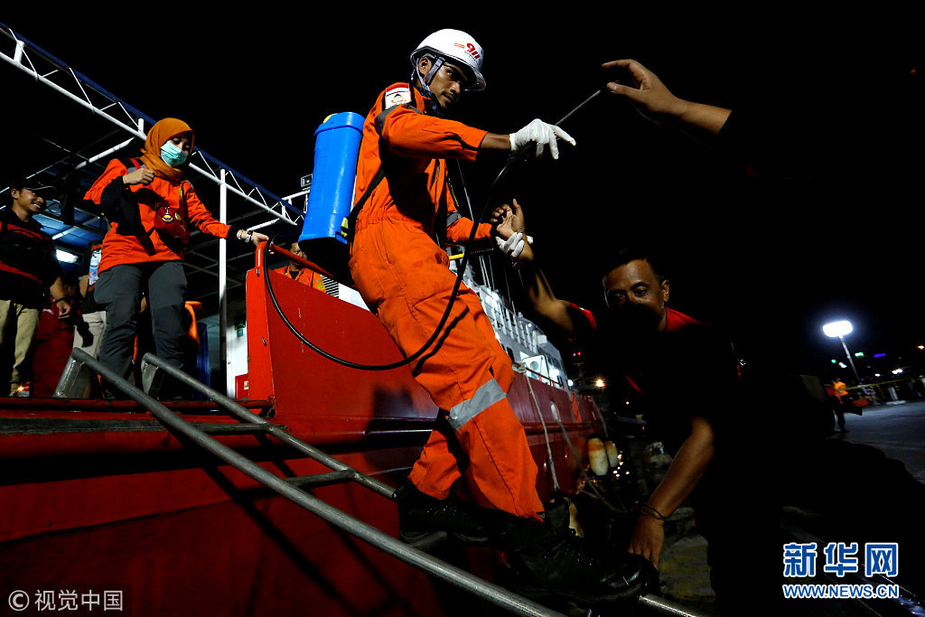 11月3日,印尼雅加達(dá),印尼獅航客機(jī)墜海搜救進(jìn)入第六天,印尼失事客機(jī)部分殘骸陸續(xù)打撈上岸。印尼國(guó)家搜救局2日表示,目前獅航失事客機(jī)的起落架、輪胎都已經(jīng)打撈上岸。同時(shí),遇難者遺體身份確認(rèn)工作也在進(jìn)行中。(圖片來(lái)源:視覺中國(guó))