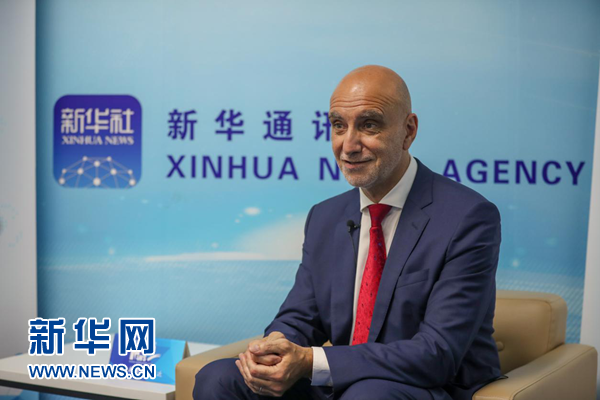 圖為達(dá)能公司高級(jí)副總裁帕斯卡爾·德彼得里尼接受新華網(wǎng)獨(dú)家專訪。新華網(wǎng) 郭小天攝