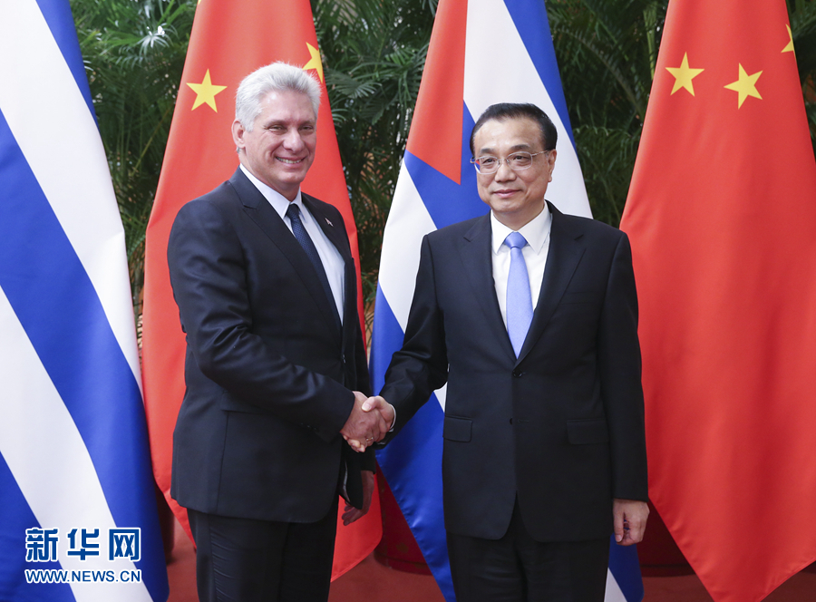 11月8日,國(guó)務(wù)院總理李克強(qiáng)在北京人民大會(huì)堂會(huì)見(jiàn)來(lái)華進(jìn)行國(guó)事訪問(wèn)的古巴國(guó)務(wù)委員會(huì)主席兼部長(zhǎng)會(huì)議主席迪亞斯-卡內(nèi)爾。 新華社記者姚大偉攝