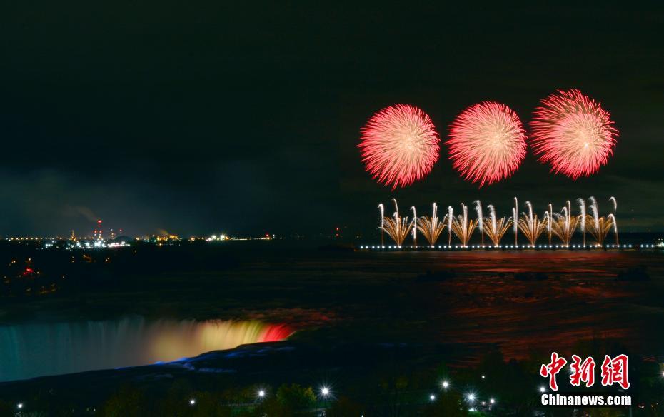 來自“煙花之鄉(xiāng)”中國湖南瀏陽的璀璨煙花點亮夜空。中新社記者 廖溟 攝