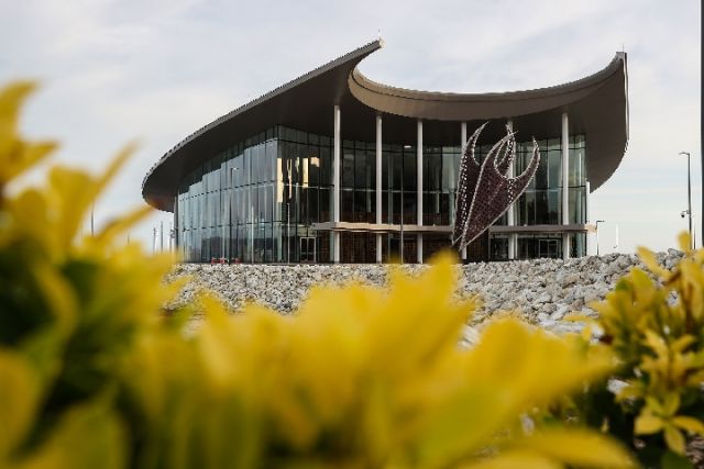 APEC大廈坐落于海濱,是此次APEC會議場館之一。主建筑造型像是巴新土著居民特有的傳統(tǒng)木舟。昔日,土著居民正是駕著這種木舟乘風(fēng)破浪,開啟周邊貿(mào)易。正門前,12米高的金屬雕塑像木舟極具辨識度的雙帆,又形似巴新國鳥天堂鳥雙翼展向空中,澳大利亞設(shè)計師以此寓意“為開啟繁榮貿(mào)易之旅揚(yáng)帆”。