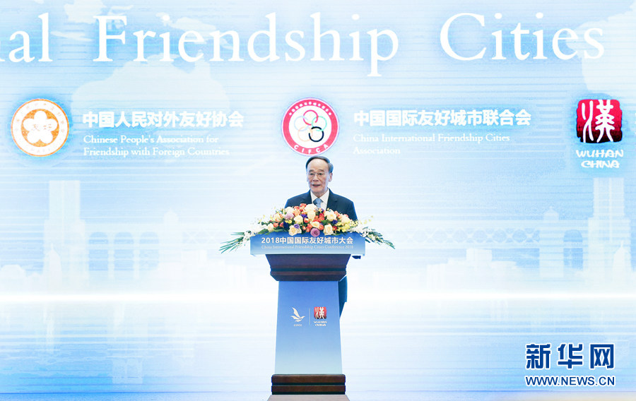 11月15日,2018中國國際友好城市大會在武漢開幕。國家副主席王岐山出席開幕式并做主旨發(fā)言。新華社記者 姚大偉 攝