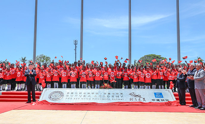 11月16日,國(guó)家主席習(xí)近平在莫爾茲比港和巴布亞新幾內(nèi)亞總理奧尼爾共同出席中國(guó)援建的布圖卡學(xué)園啟用儀式。 新華社記者 謝環(huán)馳 攝