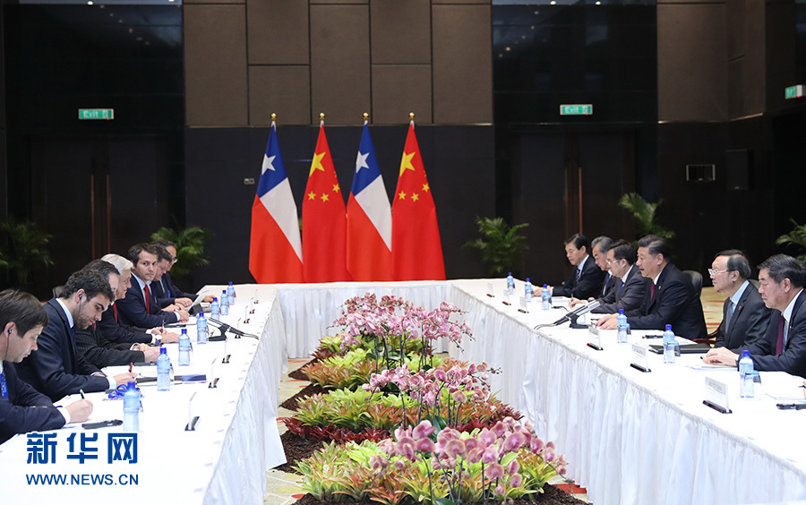 習(xí)近平強調(diào),中智已經(jīng)簽署“一帶一路”政府間合作協(xié)議,下一步要確定重點領(lǐng)域和項目,爭取實現(xiàn)早期收獲。要充分發(fā)揮雙邊合作機制作用。要以中智自由貿(mào)易協(xié)定升級為契機,推動擴大雙邊貿(mào)易規(guī)模,優(yōu)化貿(mào)易結(jié)構(gòu),深化投資合作,扎實推進(jìn)重大互聯(lián)互通項目。2020年中智將迎來建交50周年,雙方要共同辦好一系列慶?;顒?。中方愿同智方加強科技、南極等領(lǐng)域合作。中方支持智利明年主辦亞太經(jīng)合組織領(lǐng)導(dǎo)人非正式會議,共同推進(jìn)亞太自由貿(mào)易區(qū)建設(shè)。