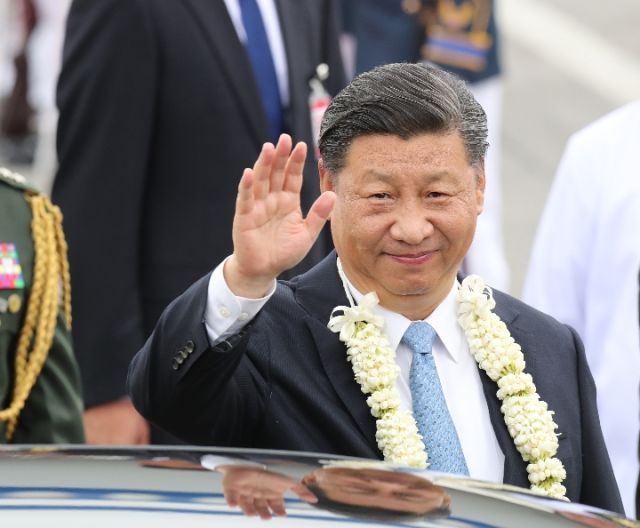 當(dāng)?shù)貢r間近午時,習(xí)近平步出專機(jī)艙門,菲律賓政府高級官員在舷梯旁熱情迎接,軍樂隊(duì)奏迎賓曲。習(xí)主席代表中國政府和中國人民向菲律賓政府和人民致以誠摯問候和良好祝愿。