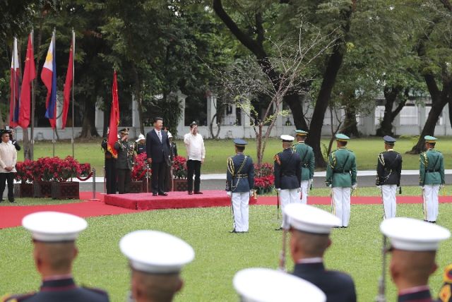 11月20日,國家主席習(xí)近平在馬尼拉同菲律賓總統(tǒng)杜特爾特舉行會談。會談開始前,習(xí)近平出席杜特爾特在總統(tǒng)府前草坪舉行的隆重歡迎儀式。(新華社記者 丁林 攝)