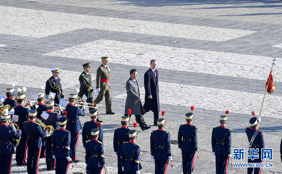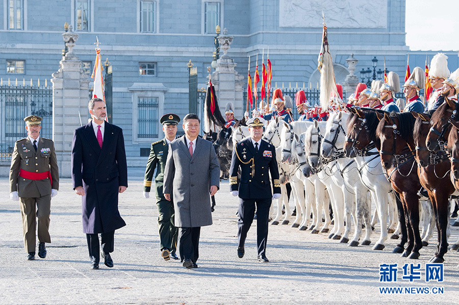 新華社馬德里11月28日電(記者郝薇薇)當(dāng)?shù)貢r(shí)間11月28日,國家主席習(xí)近平在馬德里出席西班牙國王費(fèi)利佩六世舉行的隆重、盛大的歡迎儀式。