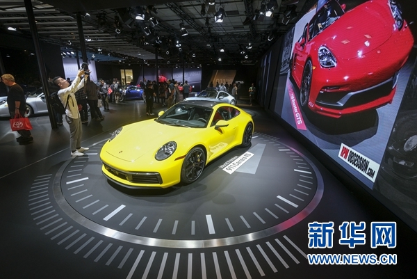 11月30日,在美國洛杉磯,人們在車展上參觀保時(shí)捷911卡雷拉4S。 新華社發(fā)(趙漢榮攝)