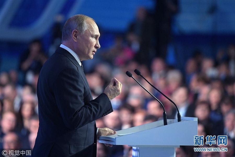 當?shù)貢r間2018年12月8日,俄羅斯莫斯科,俄羅斯執(zhí)政黨“統(tǒng)一俄羅斯黨”年度會議舉行,俄羅斯總統(tǒng)普京和總理梅德韋杰夫出席會議。(圖片來源:視覺中國)