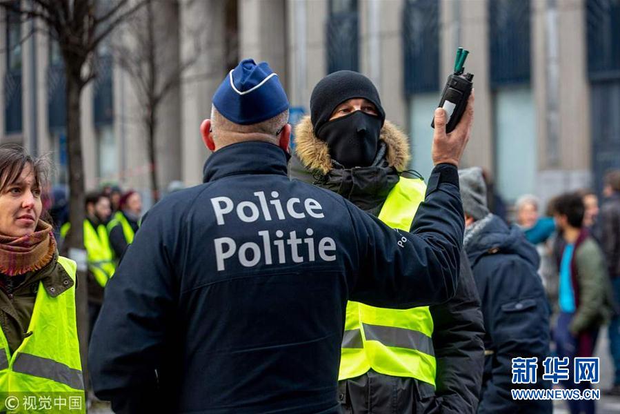 當(dāng)?shù)貢r(shí)間12月15日,比利時(shí)布魯塞爾,當(dāng)?shù)乇l(fā)“黃背心”抗議活動(dòng)。 (圖片來源:視覺中國)