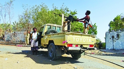 11月15日,在也門(mén)荷臺(tái)達(dá),支持也門(mén)政府的武裝人員在一輛軍車(chē)上。新華社發(fā)