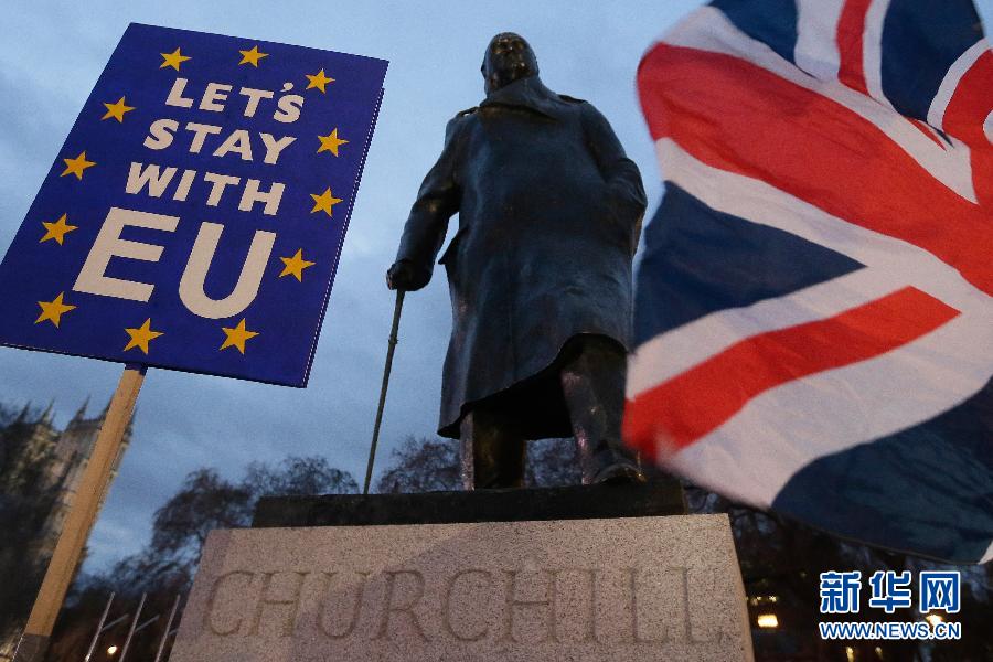 1月15日,在英國(guó)倫敦,民眾在議會(huì)大廈外的英國(guó)前首相丘吉爾雕像前參加集會(huì)。 英國(guó)議會(huì)下院15日投票否決了此前英國(guó)政府與歐盟達(dá)成的“脫歐”協(xié)議。在經(jīng)過(guò)5天辯論后,英國(guó)議會(huì)下院15日以432票反對(duì)、202票支持的投票結(jié)果否決了“脫歐”協(xié)議。 新華社發(fā)(蒂姆·愛爾蘭攝)