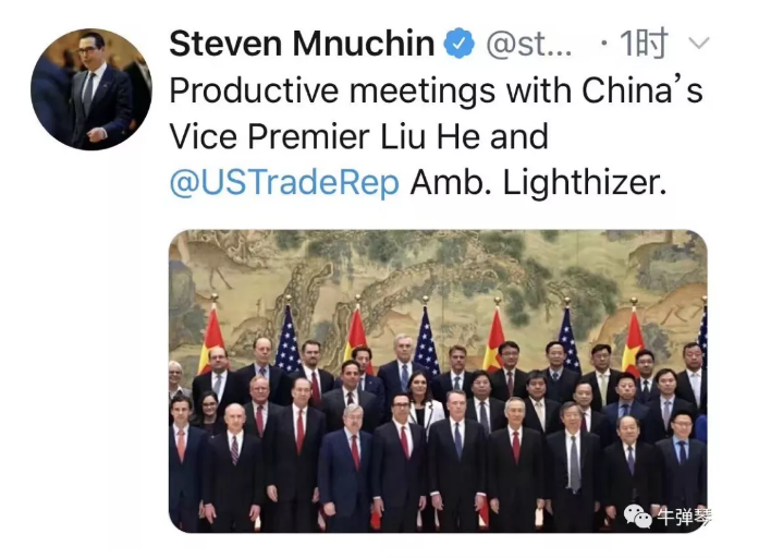 很有意思的,這次磋商一結(jié)束,美國(guó)財(cái)長(zhǎng)姆努欽立刻發(fā)了一條推特,上面寫(xiě)道:和劉鶴副總理、萊特希澤大使進(jìn)行了富有建設(shè)性的會(huì)議。