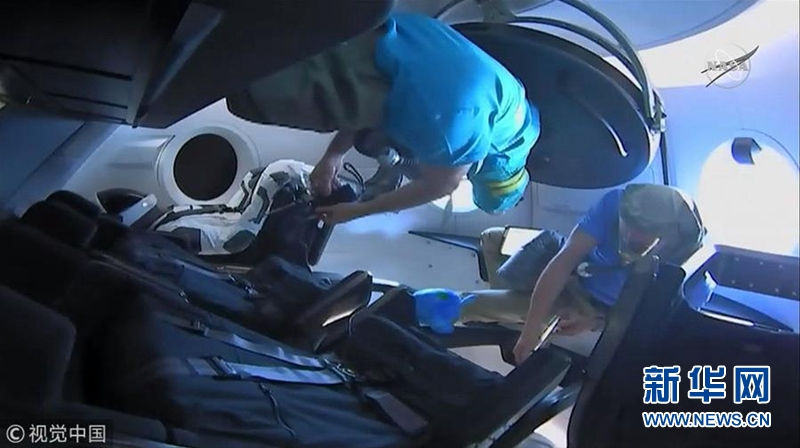 2019年3月3日,美國(guó)宇航局在任務(wù)現(xiàn)場(chǎng)直播視頻宣布,SpaceX“龍”飛船成功與國(guó)際空間站進(jìn)行對(duì)接。3月2日,載人“龍”飛船搭乘“獵鷹9”火箭在美國(guó)佛羅里達(dá)州肯尼迪航天中心39A發(fā)射臺(tái)升空。飛船里有個(gè)假人模型,用來(lái)記錄真實(shí)宇航員承受的各項(xiàng)數(shù)據(jù)。(視頻截圖)(圖片來(lái)源:視覺(jué)中國(guó))