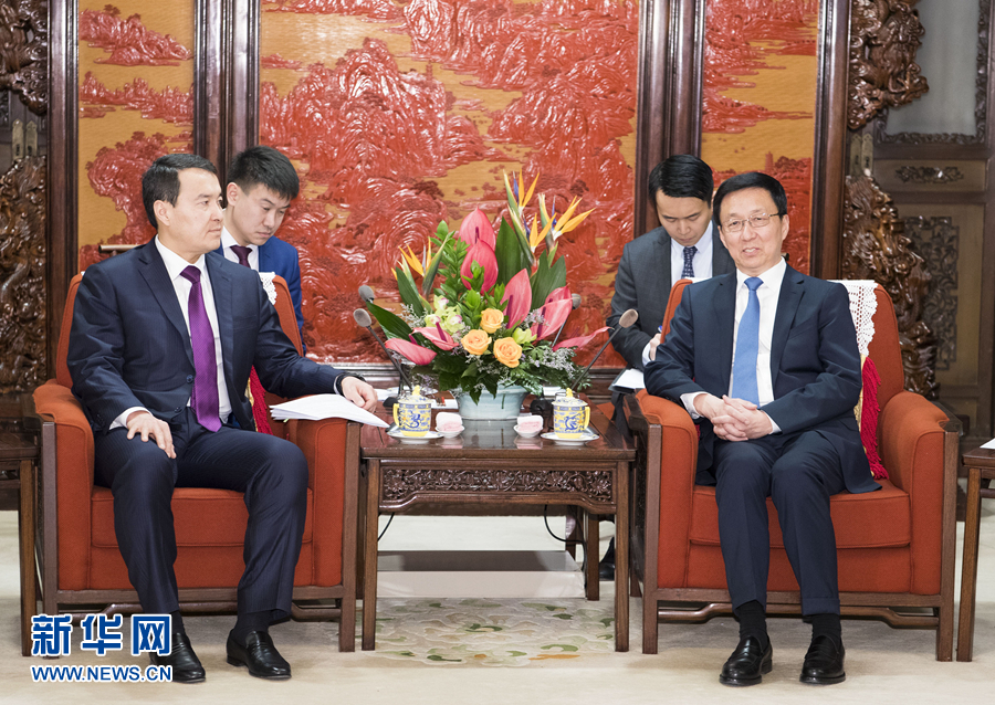 韓正表示,中哈是友好鄰邦和全面戰(zhàn)略伙伴。在習(xí)近平主席和納扎爾巴耶夫總統(tǒng)的戰(zhàn)略引領(lǐng)和親自推動下,中哈關(guān)系保持高水平運行,已成為國與國之間和睦相處、互利共贏的典范。雙方高層交往密切,政治互信不斷增強,共建“一帶一路”成果豐碩。希望雙方進(jìn)一步發(fā)揮好中哈合作委員會重要作用,加強發(fā)展戰(zhàn)略對接,推進(jìn)經(jīng)貿(mào)、投資、海關(guān)、金融等領(lǐng)域務(wù)實合作,支持兩國企業(yè)按商業(yè)化市場化原則加強項目合作,推動中哈合作不斷取得新進(jìn)展。
