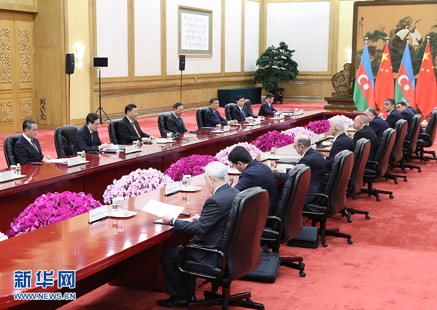 4月24日,國家主席習近平在北京人民大會堂會見阿塞拜疆總統(tǒng)阿利耶夫。 新華社記者 黃敬文 攝