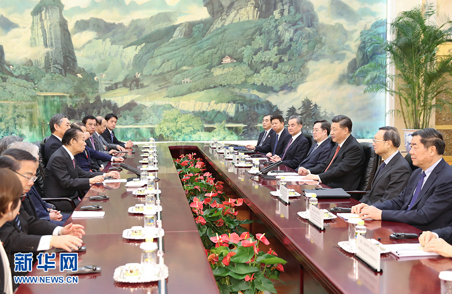 習(xí)近平指出,當(dāng)前,中日關(guān)系重回正常軌道,呈現(xiàn)積極發(fā)展勢頭。雙方要恪守中日四個(gè)政治文件確立的各項(xiàng)原則,堅(jiān)持和平友好大方向,持續(xù)深化互利合作,推動(dòng)兩國關(guān)系健康穩(wěn)定發(fā)展。要把中日“互不構(gòu)成威脅”、“互為合作伙伴,相互支持對(duì)方和平發(fā)展”的政治共識(shí)落到實(shí)處,把兩國各領(lǐng)域交流合作推向新水平。雙方要深挖合作潛力。中方歡迎日方繼續(xù)深入?yún)⑴c中國改革開放,希望日方更加積極參與共建“一帶一路”。雙方要加強(qiáng)溝通和協(xié)調(diào),共同維護(hù)多邊主義和自由貿(mào)易,共同推動(dòng)建設(shè)開放型世界經(jīng)濟(jì)。中方支持日方辦好二十國集團(tuán)領(lǐng)導(dǎo)人大阪峰會(huì)。今年是中日青少年交流促進(jìn)年,雙方要在兩國民間特別是青少年當(dāng)中廣泛播撒友好種子,推進(jìn)民心相通。