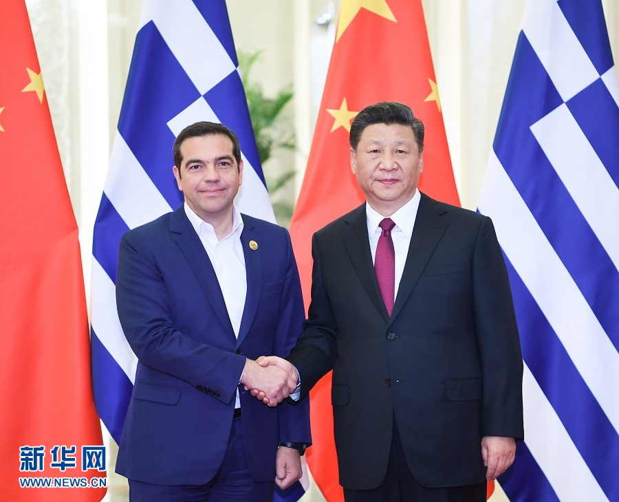 4月26日,國家主席習(xí)近平在北京人民大會堂會見希臘總理齊普拉斯。新華社記者 丁海濤 攝
